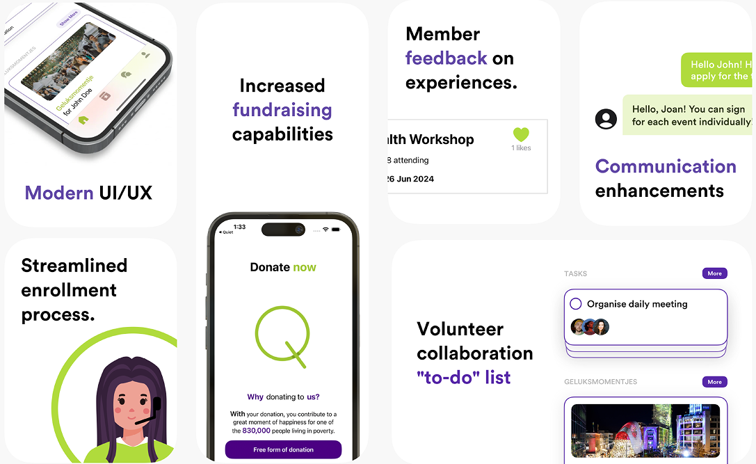 The solution was divided into two applications — one for sponsors and volunteers to manage offers and coordinate activities, and another for community members to view and request “geluksmomentjes.” Both are designed with clarity and inclusivity in mind, making it easier for everyone to connect, communicate, and contribute to Quiet Eindhoven’s mission of reducing hidden poverty.