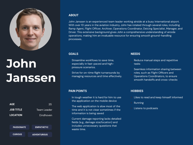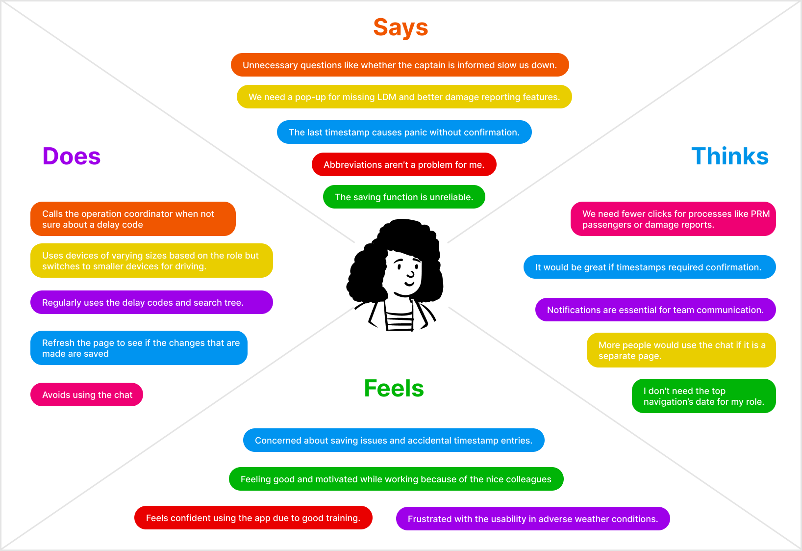 The user persona and empathy map helped me understand the goals, frustrations, and real needs of ground staff, guiding design decisions toward a more intuitive and user-centered ViCOM experience.
