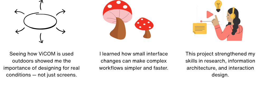 To make ViCOM more reliable and easier to use, I focused on two key goals: simplify the navigation structure and improve usability in outdoor conditions with clear visuals and touch-friendly design. During my process, I restructured the entire flow, created a new sitemap, and redesigned the interface to work smoothly on mobile devices — ensuring that ground staff can rely on ViCOM wherever they are.